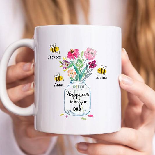Family - Happiness Is Being A Dad Bee Kids - Personalized Mug