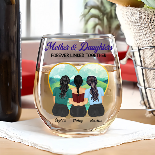 Mother & Daughters Forever Linked Together - Personalized Stemless Wine Glass