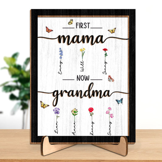 Mother - First Mom Now Grandma - Personalized 2-Layered Wooden Plaque With Stand