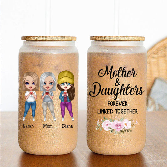 Mother - Mother & Daughter Forever Linked Together - Personalized Glass Can