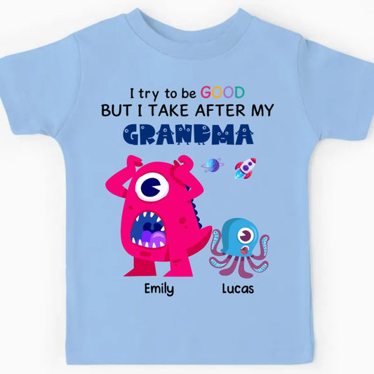 Family - Our First Mother's Day - Personalized Gift For Grandson Takes After Grandma Kid T Shirt