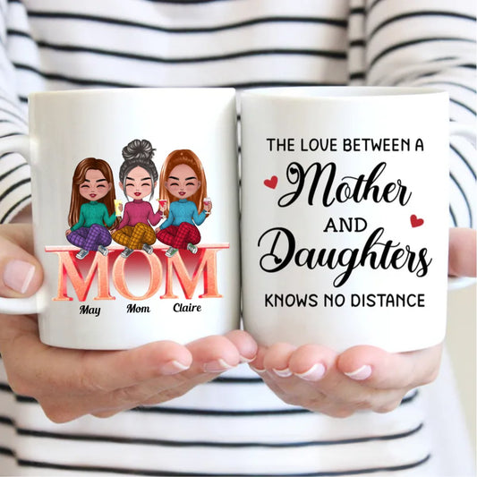 Family - The Love Between A Mother And Daughters Knows No Distance - Personalized Mug