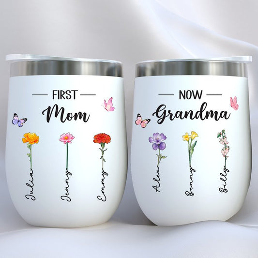 Mother - First Mom Now Grandma - Personalized Wine Tumbler (L)