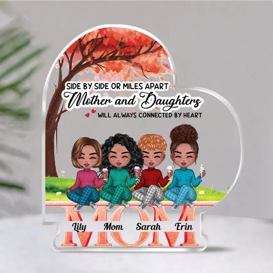 Family - Side By Side Or Miles Apart, Mother And Daughters Will Always Connected By Heart - Personalized Acrylic Plaque (NM)