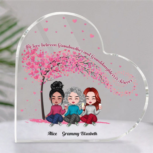 Family - The Love Between Grandmother And Granddaughters Is Forever - Personalized Acrylic Plaque (HEART)
