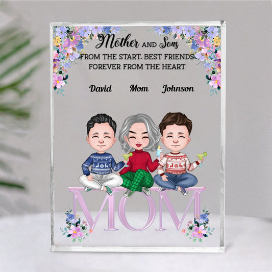 Family - Mother And Sons From The Start, Best Friends Forever From The Heart - Personalized Acrylic Plaque (NM)