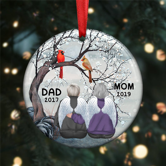 Memorial Gift - Dad Mom Cardinals Tree - Personalized Circle Ornament