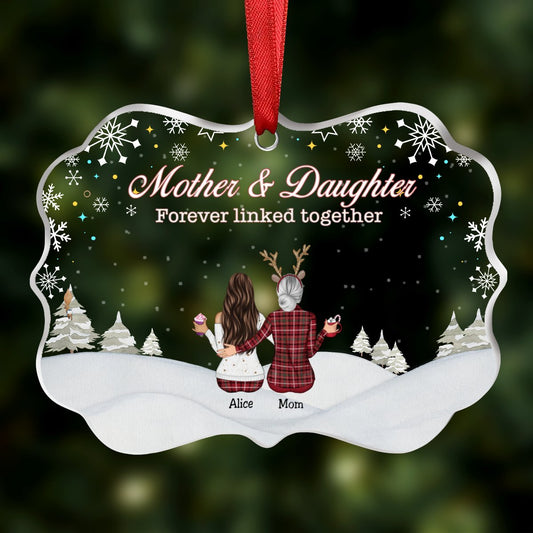 Mother & Daughter - Mother & Daughter Forever Linked Together - Personalized Transparent Ornament