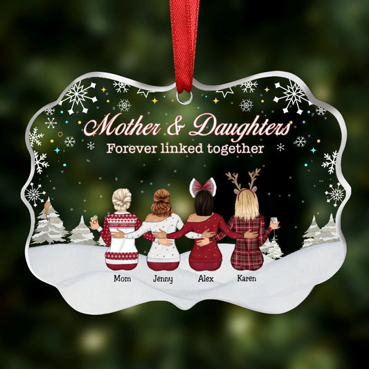 Mother & Daughter - Mother & Daughters Forever Linked Together - Personalized Transparent Ornament