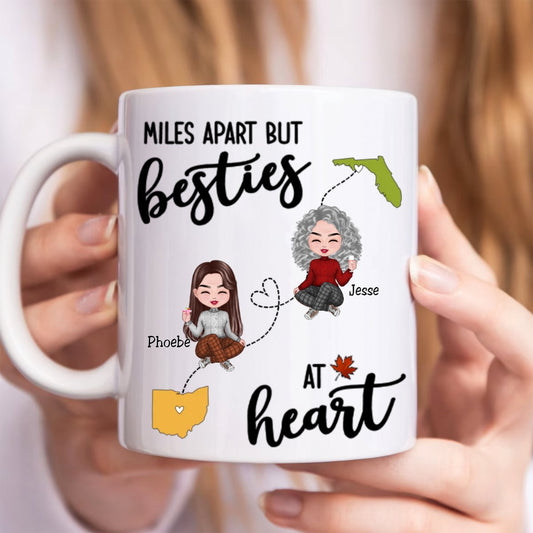 Besties - Miles Apart But Besties At Heart - Personalized Mug