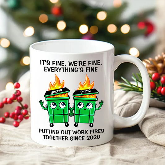 Putting Out Work Fires Together Work Bestie Dumpster Fire Funny Gift For Colleagues Personalized Mug