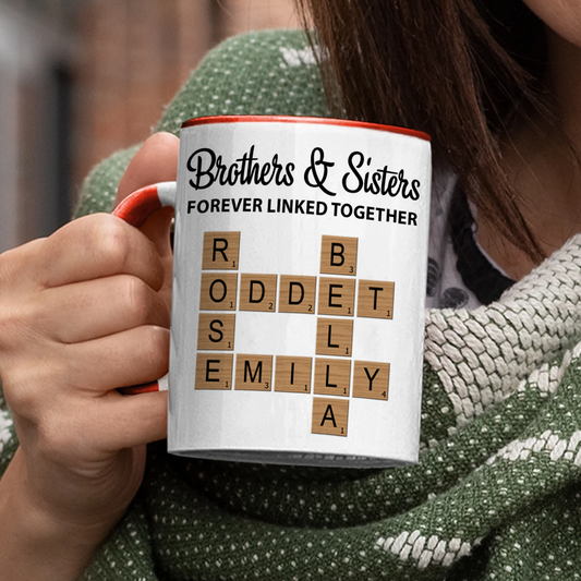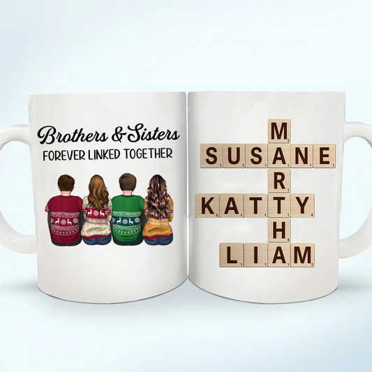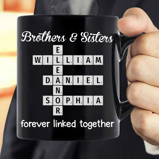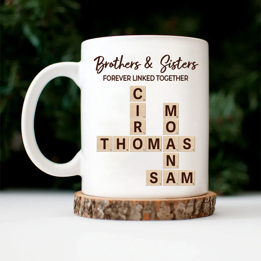 Brothers & Sisters Forever Linked Together Crossword Puzzle Art Personalized Mug, Gift For Brothers, Sisters, Siblings, Family
