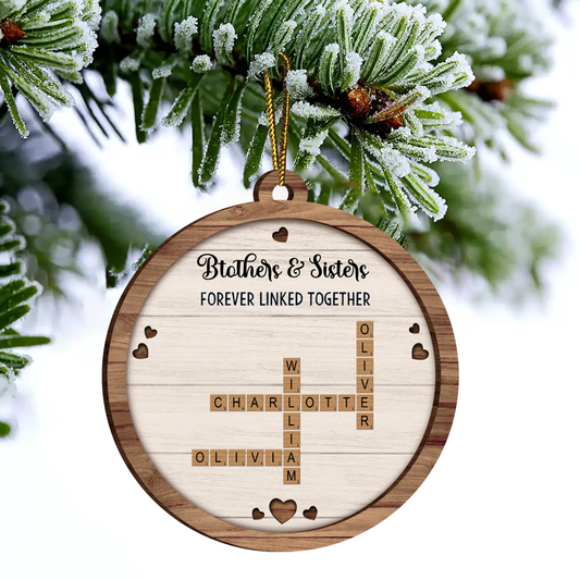 Brothers & Sisters Forever Linked Together Crossword Puzzle Art Personalized Wooden Ornament, Gift For Brothers, Sisters, Siblings, Family