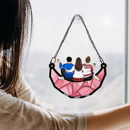 Besties Friends Brothers Sisters Sitting On The Moon - Personalized Window Hanging Acrylic Ornament