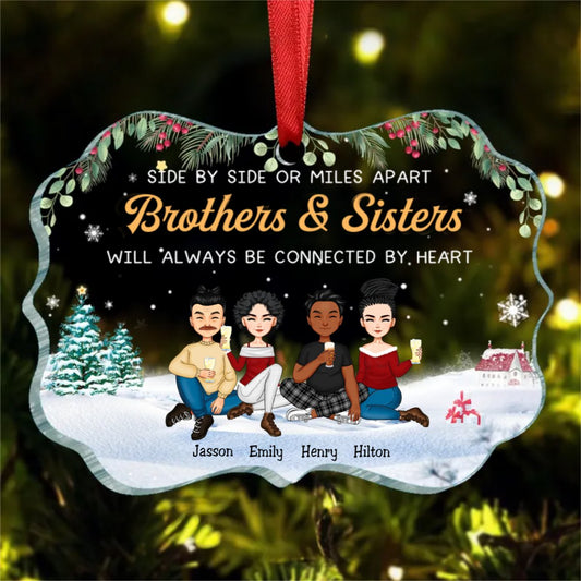 Brothers & Sisters - Side By Side Or Miles Apart Brothers & Sisters Will Always Be Connected By Heart - Personalized Christmas Ornament