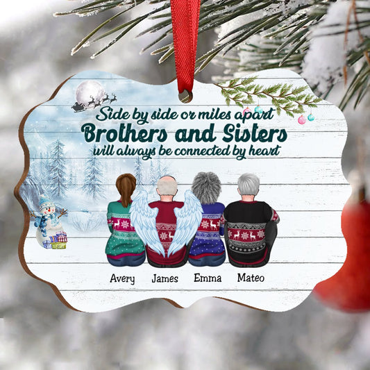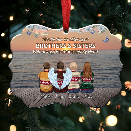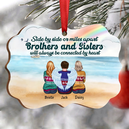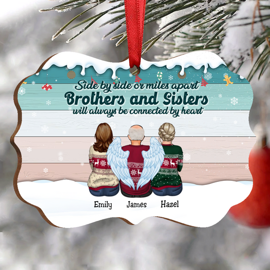 Family - Side By Side Or Miles Apart Brothers And Sisters Will Always Be Connected By Heart - Personalized Christmas Ornament