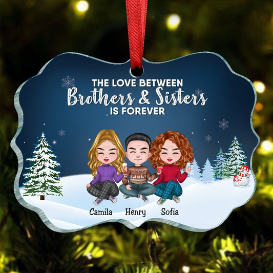 Family - The Love Between Brothers & Sisters Is Forever - Personalized Christmas Acrylic Ornament (Ver 2)