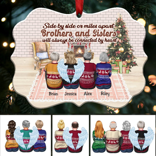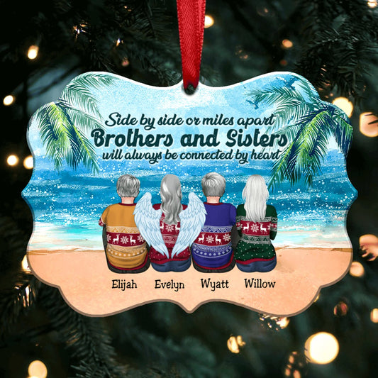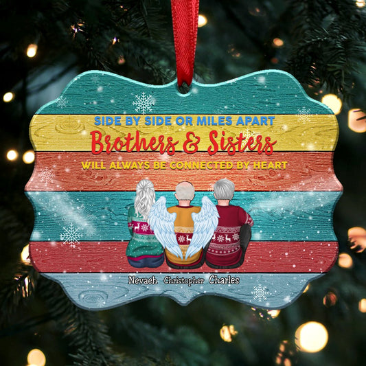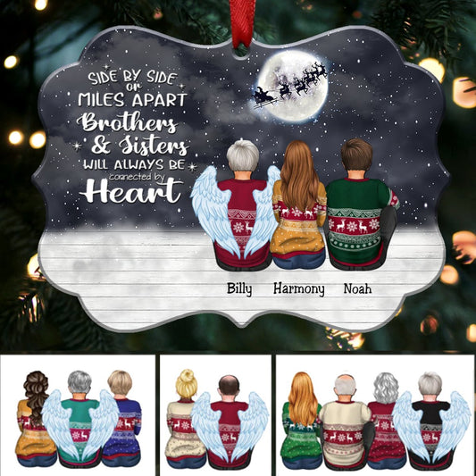 Side By Side Or Miles Apart Brothers And Sisters Will Always Be Connected By Heart - Personalized Christmas Ornament(HT2)
