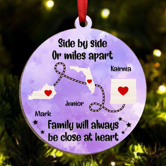 Side By Side Or Miles Apart - Christmas Gift For Family, BFF Best Friends, Siblings, Brothers, Sisters - Personalized Wooden Ornament