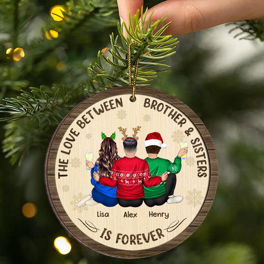The Love Between Brothers And Sisters Is Forever - Personalized Wooden Ornament