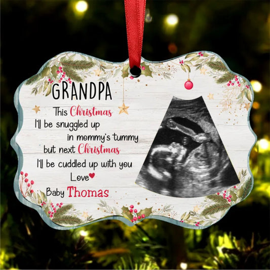 Family - This Christmas, I'll Be Snuggled Up In Mommy's Tummy - Personalized Transparent Ornament