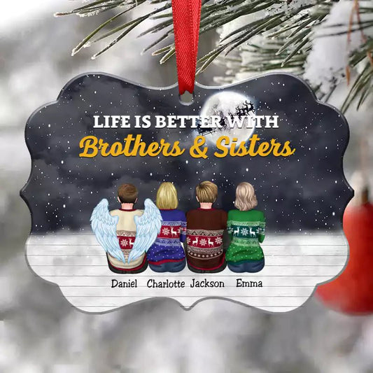 Family - Life Is Better With Brothers & Sisters - Personalized Christmas Ornament (Ver 4)