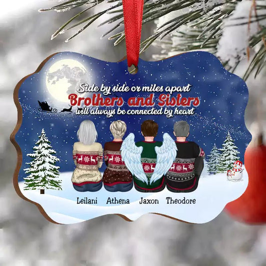 Side By Side Or Miles Apart Brothers And Sisters Will Always Be Connected By Heart - Personalized Christmas Ornament