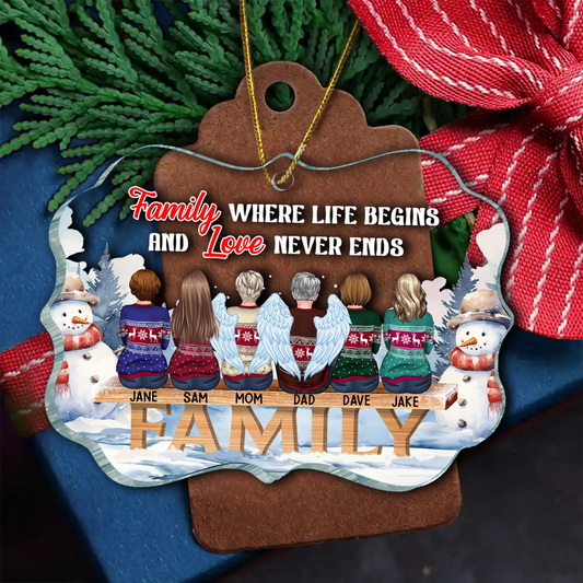Family Where Begins And Love Never Ends - Memorial Gift - Christmas Gift - Personalized Custom Medallion Acrylic Ornament