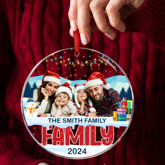 Custom Photo Christmas Family - Personalized Circle Acrylic Ornament