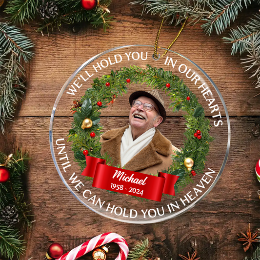Custom Photo Christmas We'll Hold You In Our Hearts - Personalized Circle Acrylic Ornament
