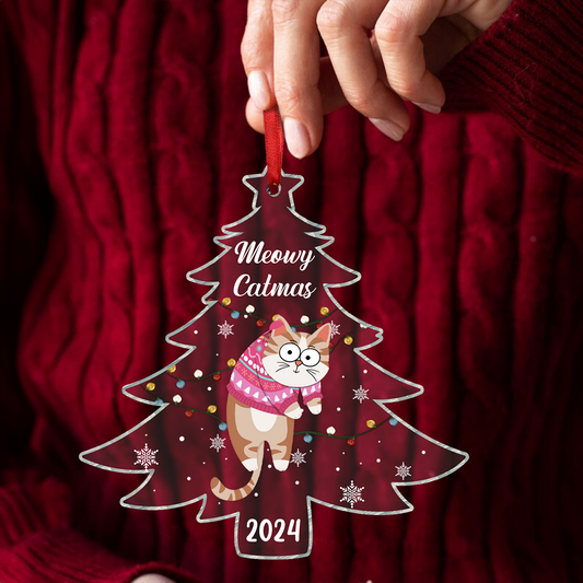 Christmas Hanging Cats Tis The Season To Be Jolly - Personalized Custom Shaped Acrylic Ornament