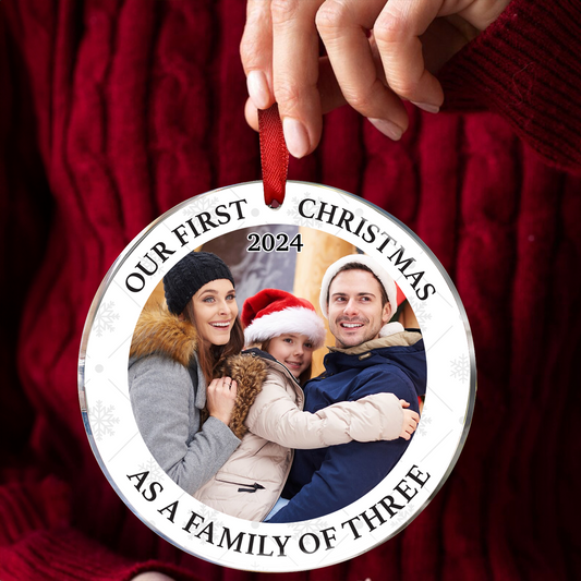 Custom Photo First Christmas As A Family Of Three New Parents - Personalized Circle Acrylic Ornament
