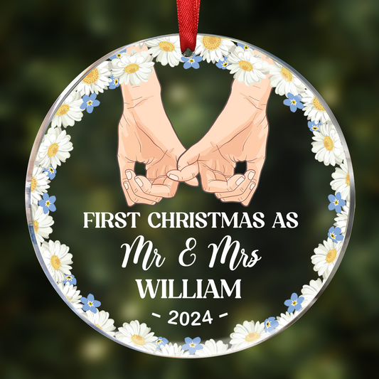 Holding Hands Husband And Wife First Christmas - Personalized Circle Glass Ornament
