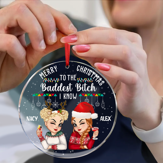 Christmas Besties Sister Sitting Together - Personalized Acrylic Ornament