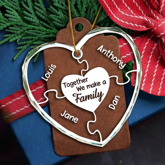 Christmas Together We Make A Family - Personalized Heart Shaped Acrylic Ornament