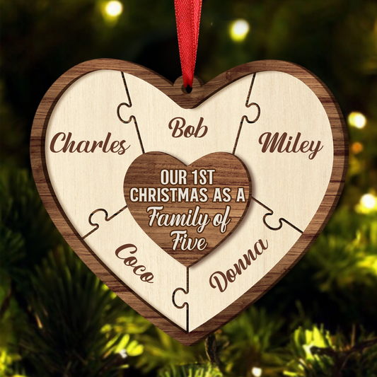 Our First Christmas As A Family Of Three Puzzle - Personalized Wooden Ornament