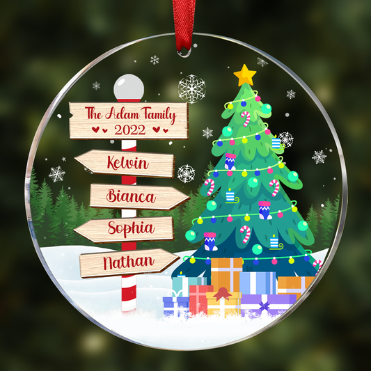 Christmas North Pole Family Name - Personalized Circle Acrylic Ornament