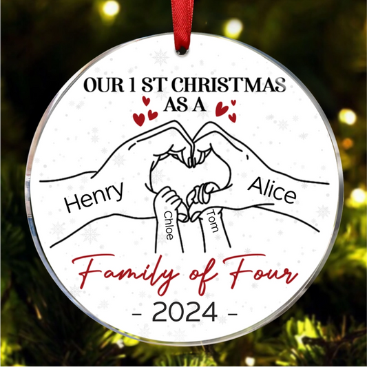 First Christmas As A Family Of Three Hand Heart - Personalized Circle Acrylic Ornament