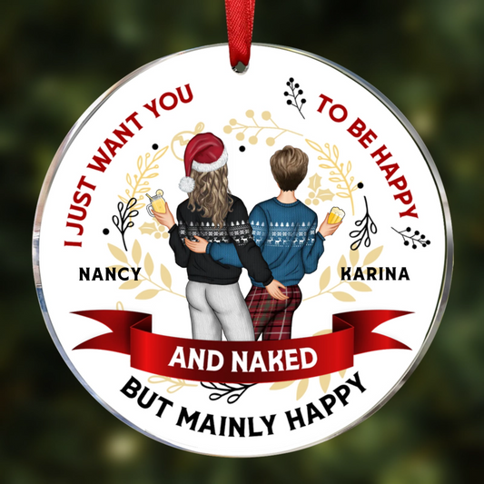 Christmas Couple Backside I Just Want You To Be Happy - Personalized Circle Acrylic Ornament
