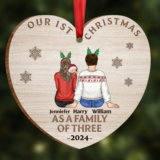 First Christmas As A Family Of Three New Parents - Personalized Custom Shaped Wooden Ornament