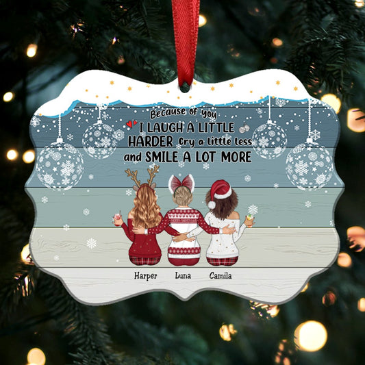 Up to 9 Women - Xmas Ornament - Because Of You I Laugh A Little Harder Cry A Little Less And Smile A Lot More - Personalized Christmas Ornament (Ver 2)