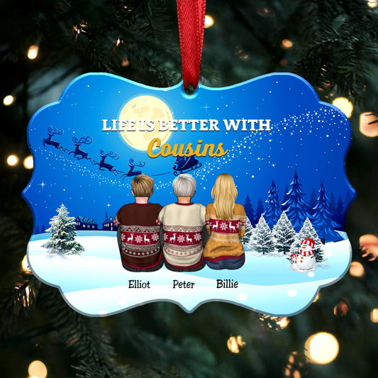 Life Is Better With Cousins - Personalized Christmas Ornament (Moon)