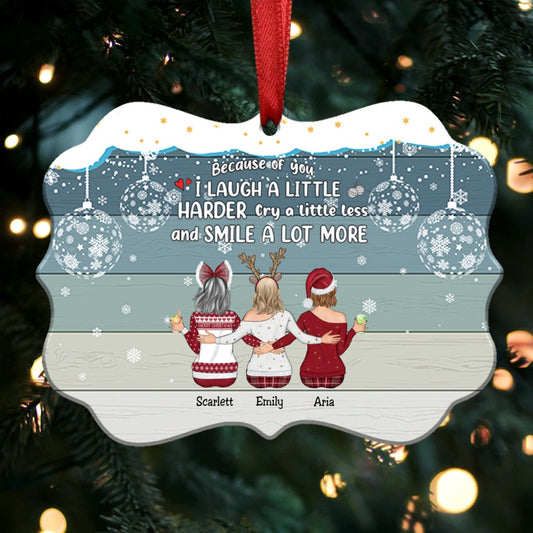 Up to 9 Women - Xmas Ornament - Because Of You I Laugh A Little Harder Cry A Little Less And Smile A Lot More - Personalized Christmas Ornament (Ver 3)