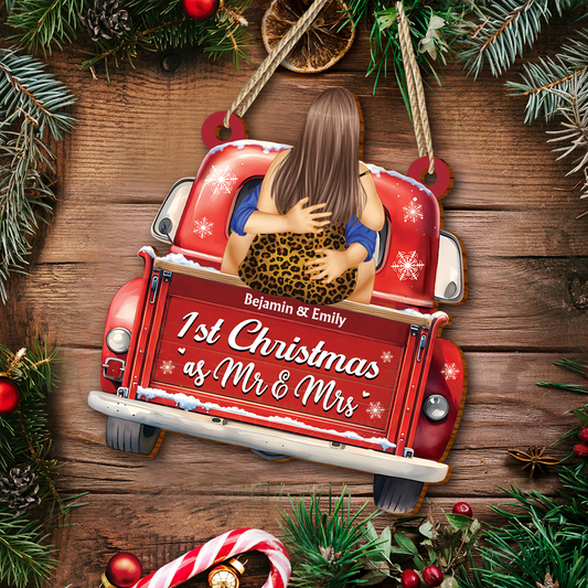 Back Couple Our First Christmas As Mr. & Mrs. - Personalized Wooden Ornament