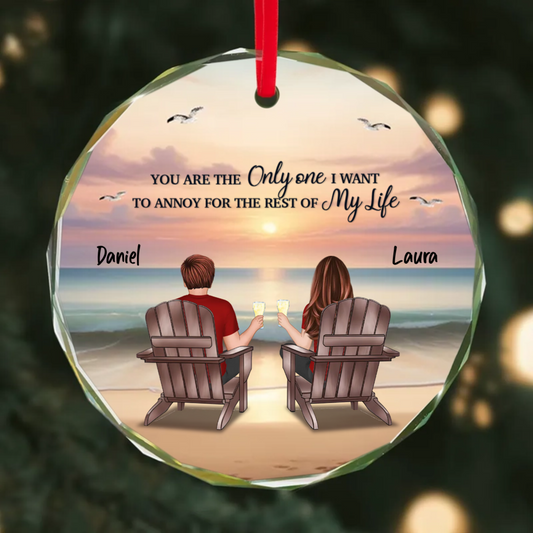 Couple Sitting Eternal Sunset Beach Personalized Circle Acrylic Ornament, Heartfelt Christmas Gift For Girlfriend, For Wife