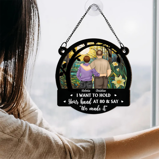 Couple Hold Your Hand At 80 - Personalized Window Hanging Suncatcher Ornament