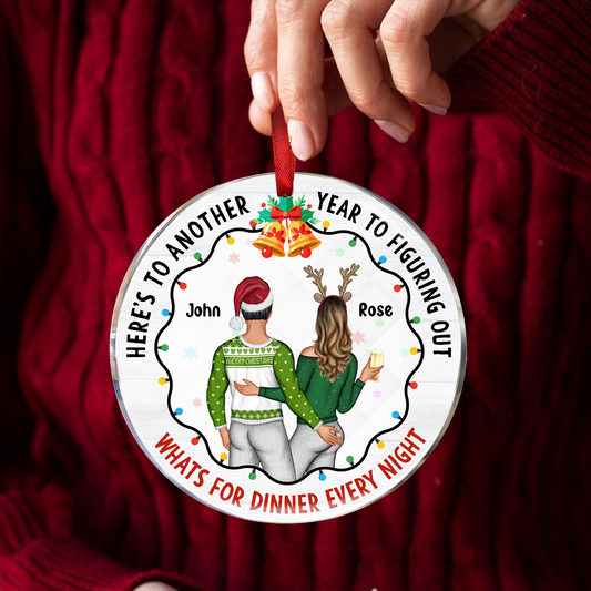 Christmas Couple Figuring Out Dinner - Personalized Circle Acrylic Ornament