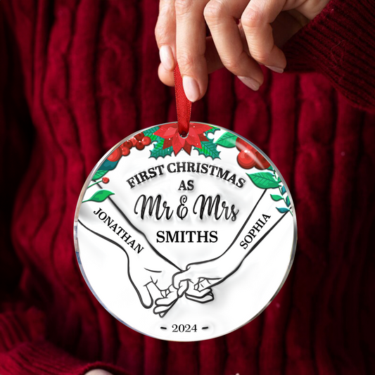 Holding Hands First Christmas Couple - 3D Inflated Effect Printed Ornament, Personalized Circle Ceramic Ornament
