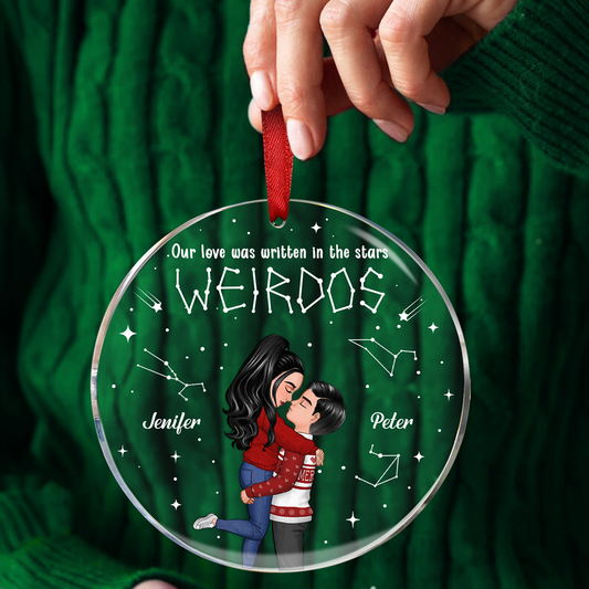 Christmas Couple Written In The Star - Personalized Circle Acrylic Ornament