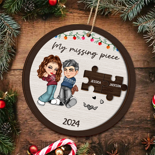 My Missing Piece Couple Christmas - Personalized 2-Layered Wooden Ornament